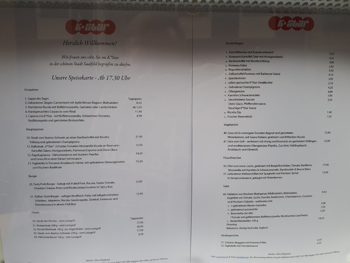Welcome to K*Star Saalfeld, a culinary gem nestled in the heart of Saalfeld, Germany. Located at Brudergasse 10, this vibrant eatery has gained a reputation for its warm hospitality and inviting atmosphere. Guests rave about the delightful cocktails and exceptional wine selection, making it an ideal spot for evening gatherings.